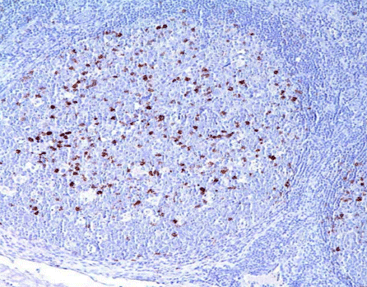 Tonsil tissue stained with CD57